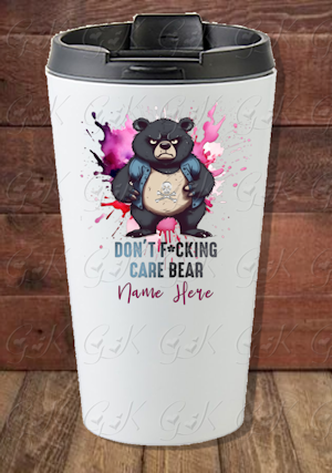 16oz Stainless Steel Travel Tumbler, Don't Fcking Care Bear