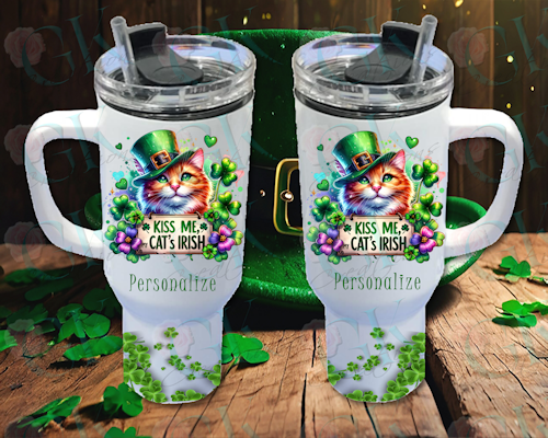 Coffee Mugs, Kiss Me, My Cat's Irish 40oz Stanley Style Tumbler.