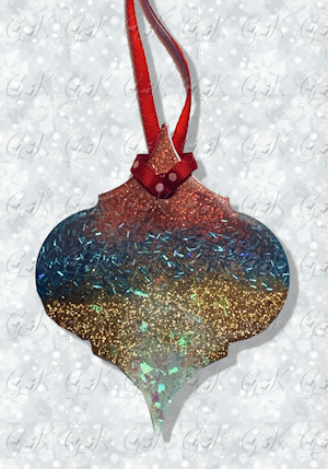Decorate your tree with this beautiful Arabesque ornament filled with different colors and glitter.