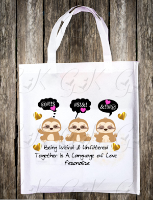 For your sarcastic side, these humorous Being Weird and Unfiltered hand printed tote bag are just what you need. They are made of non woven fabric, they are breathable and flexible, safe and damp proof with a smooth surface. Printed on both sides.