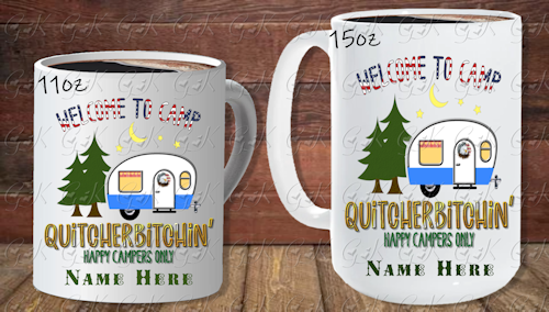 These Camp Quit Your Bitchin' Coffee Cups are the perfect companion for all your outdoor adventures. Great for gift giving or for yourself. Ceramic