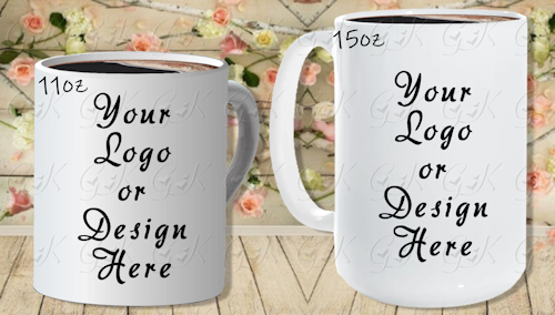 Mugs come in 11oz. and 15oz. All mugs come with boxes.