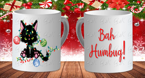You will be sipping your hot beverage in style when you add these Christmas Hum Bug Kitty mugs to your cabinet or décor! Great as gifts for yourself, teacher, family member, etc.! Ceramic.