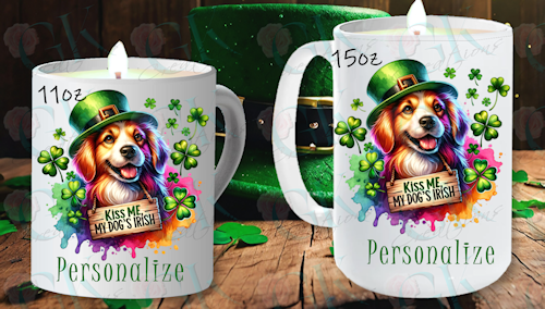 Show your love with these adorable mugs! Heart says "Kiss me, my dog is Irish"!