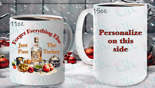 You will be sipping your hot beverage in style when you add this Wild Turkey mug to your cabinet or décor! Graphic says, "Forget everything else, just pass the Turkey". The TURKEY is the bottle of Wild Turkey sitting on the table instead or a roasted turkey. Great as gifts for yourself, teacher, family member, etc.! Ceramic.