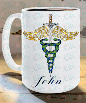 Sip your hot beverage in style with these beautiful 15oz. Caduceus Mugs! Great as gifts for yourself, coworker, supervisor, family member, etc.! Ceramic.