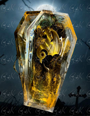 This darling Coffin box is perfect to store jewelry, loose change, and other small items. Being that this is a handmade, hand-poured item the pattern will always be a little different with each individual coffin. Outside measurements 4 3/4" L x 2 7/8" W x 1 3/8" D. Inside measurements 4 5/8" L x 2 3/8" W x 1 1/8" D.