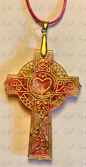 As ancient symbols of Celtic religious tradition Celtic crosses feature ornate carvings dating back centuries. This Celtic Cross is cast in resin and has an intricate design with a heart. Makes a beautiful gift.