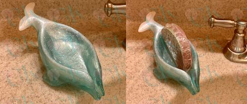 Beautiful dolphin shaped resin soap holder will be the envy of the neighborhood. The dolphins head and nose area is tilted and open for water to drain away. It fits a standard soap and is easy to just rinse clean. The perfect addition to your beach house décor. Or make it a gift for the Dolphin enthusiast.
