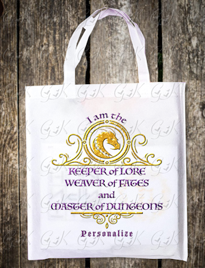 If you want to personalize your tote bag, type in a NAME and/or title (i.e. Kevin, Dungeon Master), in the "PERSONALIZATION" field above. Contact me after ordering if you would like to make any changes at grannykate@grannykates.com.
