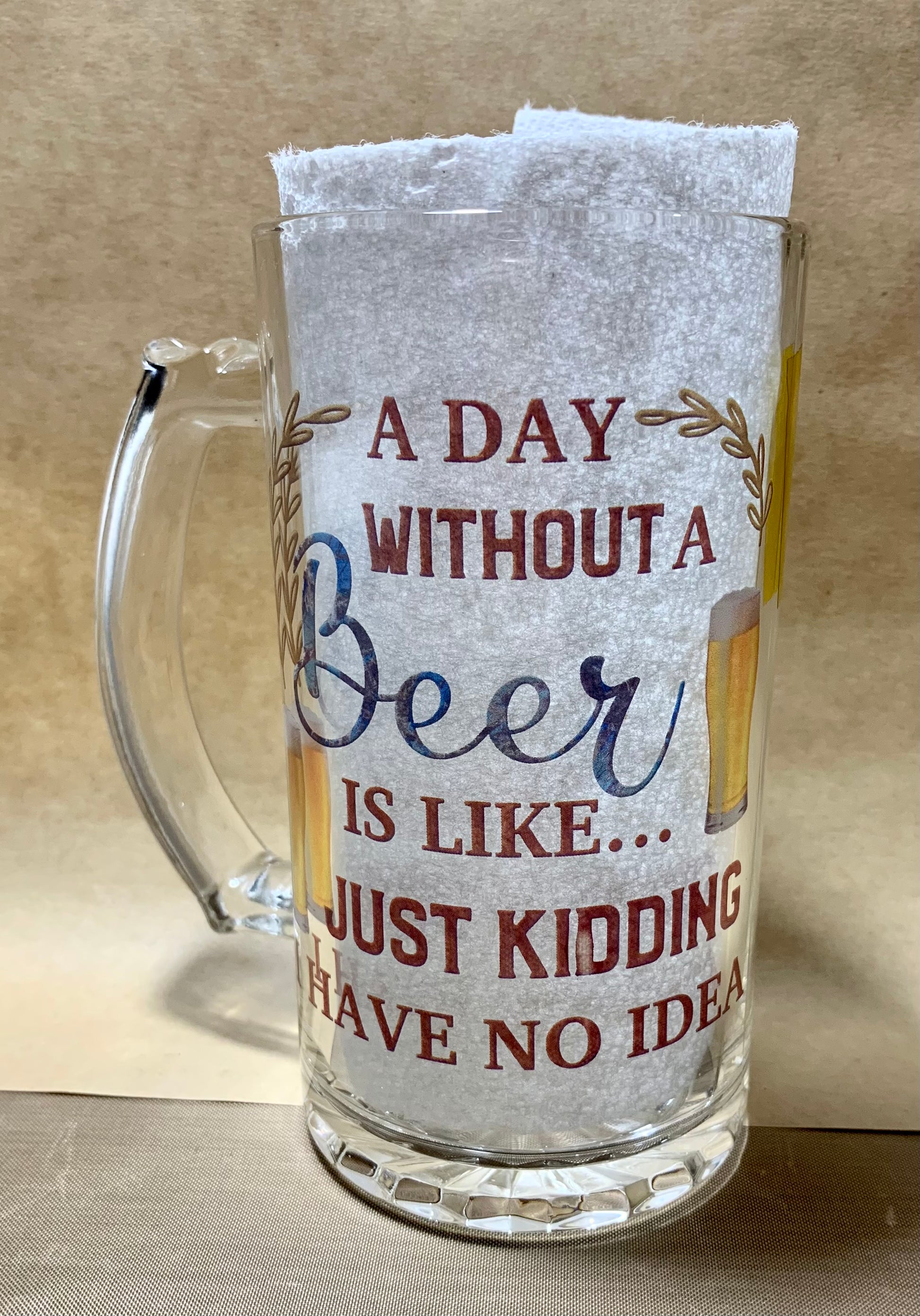 Glass Beer Mugs with funny sayings! Great for gifts to friends, family, or self!
