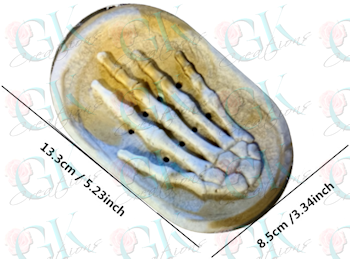 Cute skeleton hand soap dish would make a great addition to your goth bathroom or Halloween décor. Can also be used as a trinket dish. This soap dish is designed with drain holes to prevent water from pooling and help your soap bar dry quickly.