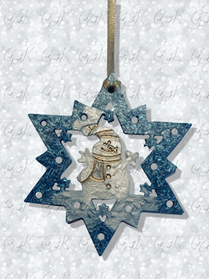 Decorate your tree with this adorable Snowman sitting within a star Ornament.