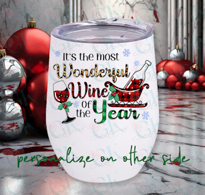 Unwind in style with our Stemless Cup, because it’s always The Most Wonderful Time For Wine. Perfect for those moments when you want to unwind and relax after a long day. Great for use outdoors and camping. The 12oz cup includes a clear plastic lid. Double-wall stainless steel vacuum insulated. Graphic says "It's The Most Wonderful Wine of The Year".