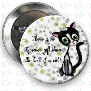 Button or Magnet says " There is not greater gift than the love of a cat".