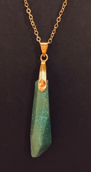 Turquoise is a purification stone. It dispels negative energy and can be worn to protect against outside influences or pollutants in the atmosphere. Turquoise balances and aligns all the chakras, stabilizing mood swings and instilling inner calm. It is excellent for depression and exhaustion, it also has the power to prevent panic attacks. Turquoise promotes self-realization and assists creative problem solving. It is a symbol of friendship, and stimulates romantic love.