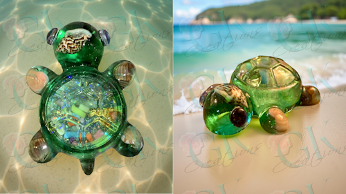 If you love Turtles, then this cutie is up your alley. The one shown has shells in the feet and head. In the liquid body it has a touch of glitter, gold ocean charms, and a bit of sprinkles. This little guy can be a keychain, zipper pull, magnet, or just something to put on your desk and play with. Great for holidays, birthdays, or any day.
